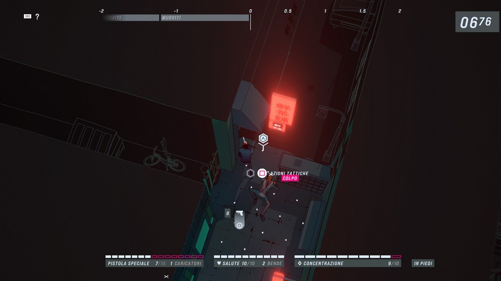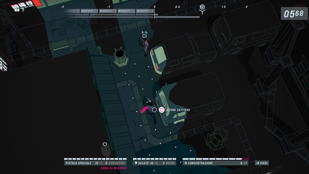 Il tempo è fondamentale alla comprensione del gioco. Ogni azione compiuta da Wick impiega un determinato numero di secondi (o meno) per essere attuata. Nel frangente in cui John esegue l’azione, però, tutti i nemici nell’area proveranno a farvi fuori. È quindi essenziale imparare a sopperire alla mancanza di tempo con spostamenti ed attacchi, in modo da non essere sopraffatti dal nemico.