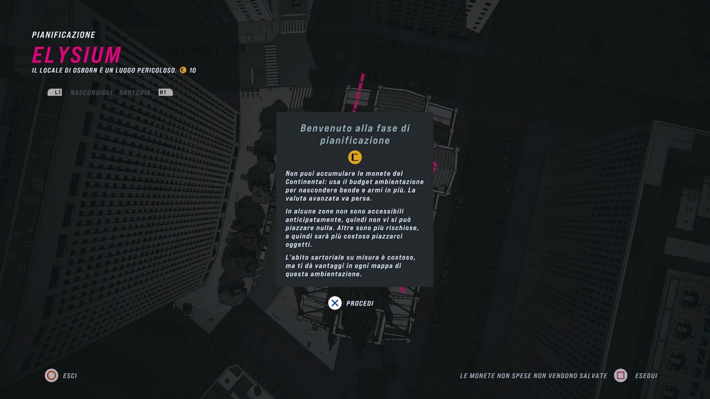 Prima di cominciare a trattare del gameplay nel dettaglio, il titolo propone una “pianificazione” all’inizio delle missioni. Durante la pianificazione vengono mostrate tutte le aree della missione, potendo qui decidere se migliorare le abilità di John nella “Sartoria”, oppure se nascondere armi o bende nelle suddette aree. Per quanto mi riguarda, provando ad ottenere il massimo dalle mie prestazioni, ho sempre preferito la Sartoria alle armi. Le abilità di Sartoria, infatti, migliorano sensibilmente le capacità di John, migliorandone la mira, la probabilità di schivare le pallottole ed altro ancora.