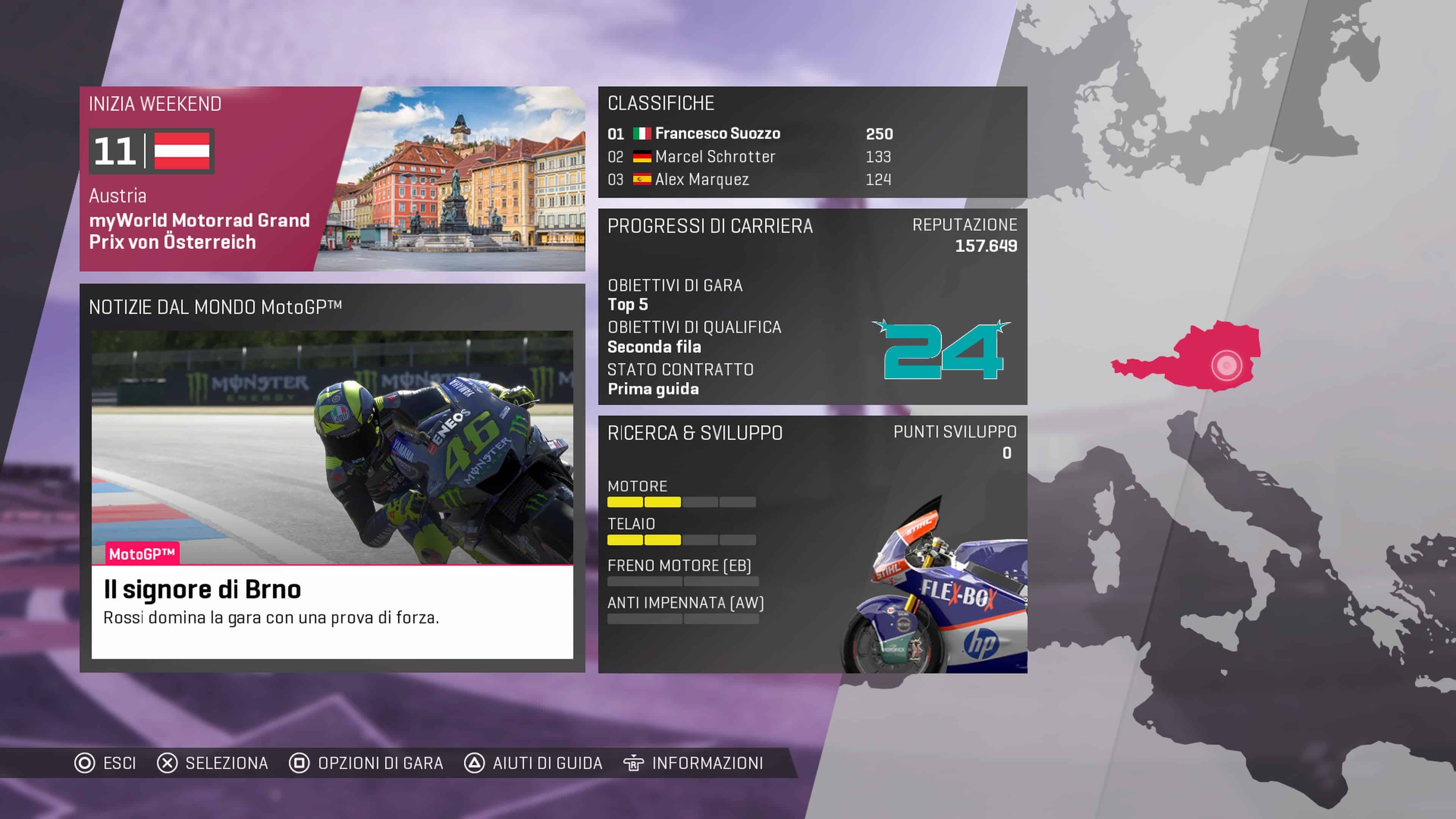Fanno il loro ritorno anche le sfide da affrontare in prova libera, le quali servono per ottenere “Punti Sviluppo”. Con questa speciale valuta è possibile potenziare la moto.